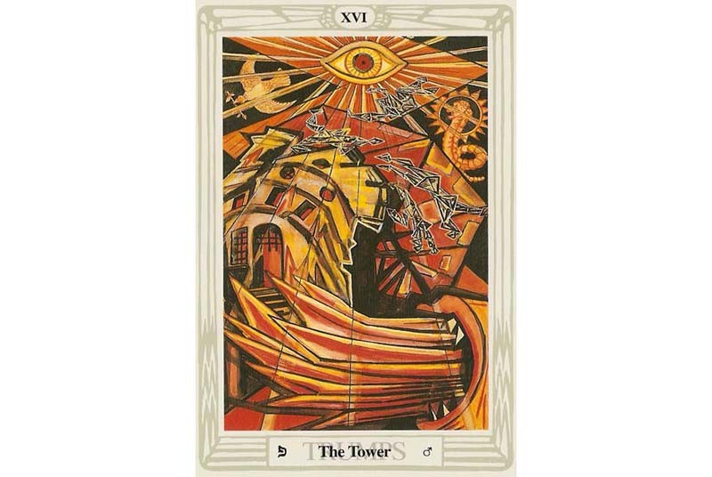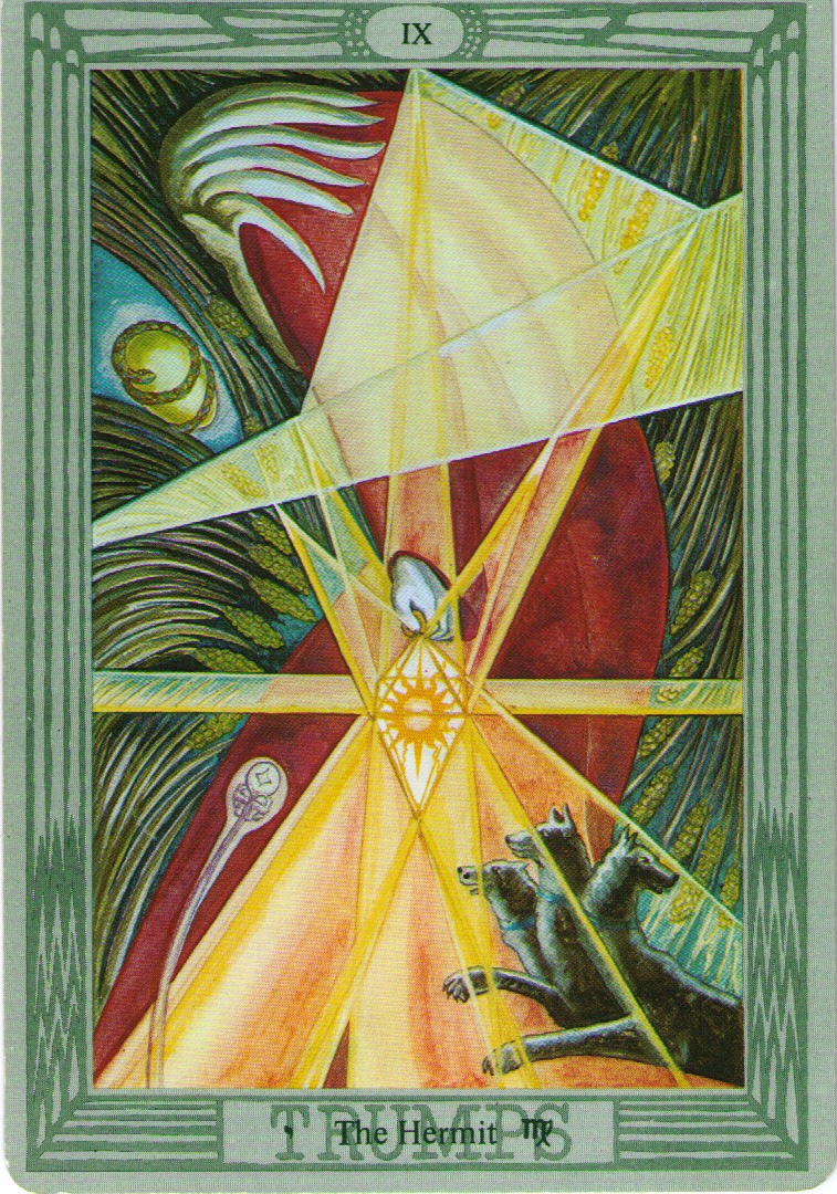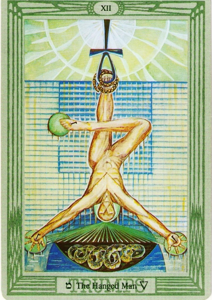 Две змеи около его головы — это древнеегипетский символ врачевания и восстановления (Кадуцей). В данном контексте они относятся к восстановлению (регенерации) мысли. Над ними — Глаз Хора (бога Восприятия) с символом голубя (носителя духа). Маг получает вдохновение от души Вселенной, чье послание он распространяет на Земле. Это сильнее выражено сине-желтым энергетическим пучком, который входит в его голову, проникает через его тело и опять выходит у его ног. Он не может выполнять свои задачи без того, чтобы не быть постоянно в соприкосновении с духовными силами вселенной. Он всегда на службе у высшего закона. Когда он признает и принимает свою истинную функцию, он несет проясняющий свет во тьму невежества и непонимания.