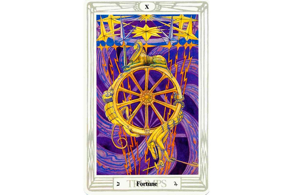 Десять монет расположены в виде Древа Жизни. Это означает, что истинное богатство должно затрагивать все уровни вашей жизни. Меркурий в Деве представляет переполнение на духовном, эмоциональном и физическом уровнях. Эти богатства надо делить с другими (коммуници-ровать), если они должны сохранить свою ценность. Если их хранить, их энергия застаивается и портится. Цепляние и хватание возникают из страха недостатка (дефицита) (сознательного или подсознательного страха), и выражают бедность мышления. Даже величайшие сокровища теряют свою ценность, если их не использовать ради служения пюбви. Это представлено фиолетовыми монетами на заднем плане. Придерживание энергии, являющейся выражением богатства, заставляет ее прокисать. Монеты потеряли свой блеск.