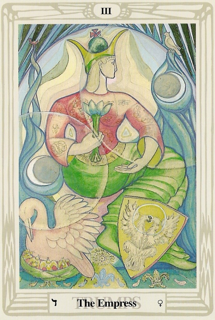 Розово-белый пеликан, кормящий свой выводок собственной кровью, означает необусловленную материнскую любовь — питать молодежь всем своим существом. Императрица также представляет Великую Мать, Мать-Землю, которая порождает и питает все живые существа. Двуглавый белый орел на щите (соответствующий красному орлу императора) символизирует трансформацию, возникающую через единение разнообразных аспектов вашего существа.