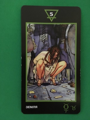 Состояние: Униженность, стыд, растерянность. Девушка не позволяет себе встать. Корни кроются в Четверке Земли: после унижения я никого не достойна. Комплекс «я лишняя». Ощущение собственной неполноценности — как у нежеланного ребенка или изнасилованной девушки. Заниженная самооценка.