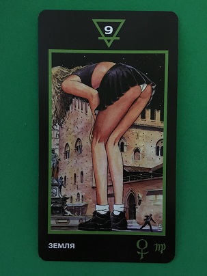 Девятка Земли — карта роста. Быстрое взросление, акселерация, когда самосознание не успевает за ростом личности. У человека появляются новые возможности, но он продолжает цепляться за старое. Внутренний «размер» личности не соответствует окружению.